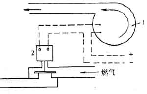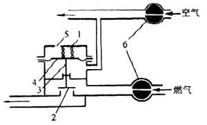 2.電磁閥控制的預防空氣中斷的安全裝置(圖3—10—18)它能預防電流中斷引起的事故。當電流中斷時,電磁閥切斷燃氣;若電流恢復,電磁閥重新開啟,讓燃氣通過。它的作用與鼓風機的風量及風壓無關。