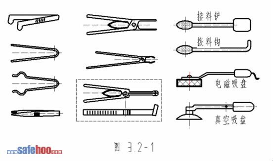 根據前面的介紹,目前的各種安全裝置均有其局限性,尤其是在面廣量大的小型剛性離合器沖床上,可用的安全裝置還是空白。所以為了避免用手直接伸入上下模口之間裝拆制件和清理廢料,必須使用手用安全工具。