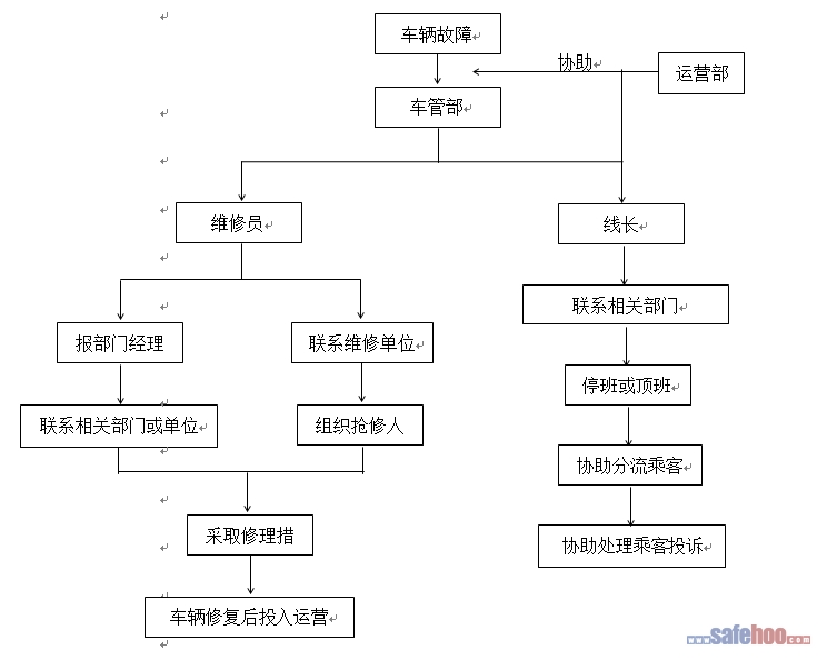 5.運營車輛發生故障后,相關人員根據各自崗位職責的要求,立即按照應急處理程序,采取合理措施,妥善安撫乘客,及時與相關部門和單位聯系,做好停班、機動車頂班以及故障車輛的修復工作,確保班車正常運營,并協助做好乘客投訴、分流等工作。