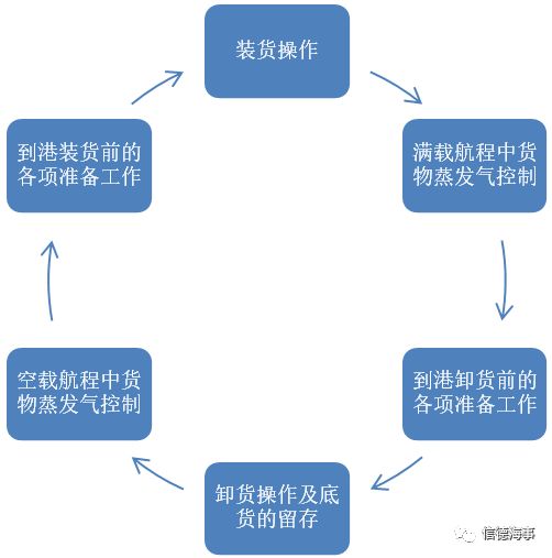 LNG船的一個基本裝卸貨航次循環(huán)如下圖所示: