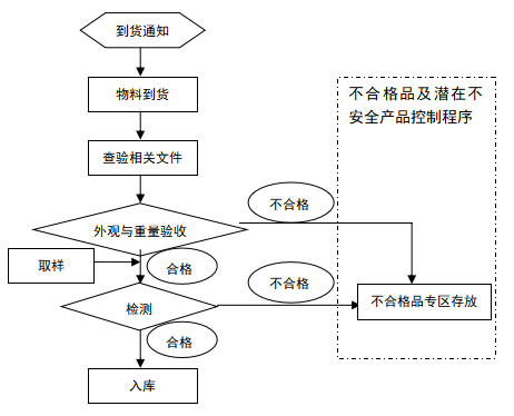 2、若經質量管理部檢測,判定為不合格,庫管員負責變更物料狀態由待驗轉為不合格,按《不合格品與潛在不安全產品控制程序》執行。