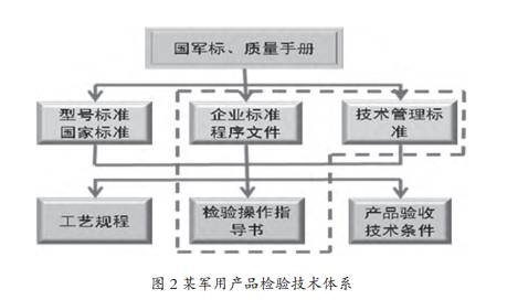 檢驗(yàn)對(duì)于產(chǎn)品而言,是對(duì)產(chǎn)品的一個(gè)或多個(gè)質(zhì)量特性進(jìn)行的諸如觀察、測(cè)定或試驗(yàn)、度量,并將同規(guī)定要求進(jìn)行比較以確定合格與否的活動(dòng)。它需要充分運(yùn)用各種檢測(cè)方法去證實(shí)所加工的產(chǎn)品質(zhì)量特性符合技術(shù)文件要求即文實(shí)相符,而這種證實(shí)數(shù)據(jù)的獲取技術(shù)即為檢驗(yàn)技術(shù)。產(chǎn)品質(zhì)量特性的獲取不是單一檢驗(yàn)方法和技術(shù)能夠滿足的,它需要最大限度地整合各種檢測(cè)手段和技術(shù),才能保證產(chǎn)品質(zhì)量特性全部獲取,這就是體系的作用,如圖2所示是某軍用產(chǎn)品檢驗(yàn)技術(shù)體系,各處單元相互關(guān)聯(lián)、相互支持,檢驗(yàn)體系通過(guò)諸如基礎(chǔ)管理、目視檢驗(yàn)、尺寸測(cè)量、裝配檢驗(yàn)等檢驗(yàn)技術(shù)內(nèi)容有機(jī)融為整體,形成合力,才能發(fā)揮檢驗(yàn)把關(guān)職能。