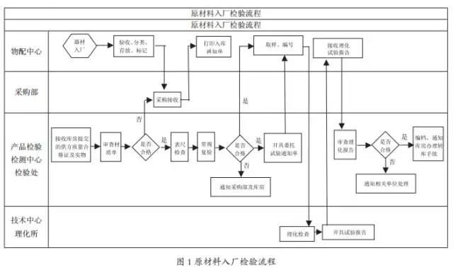 流程(Process),也譯為過(guò)程,是“工作流轉(zhuǎn)的過(guò)程”的簡(jiǎn)稱。這些工作需要多個(gè)部門、多個(gè)崗位的參與和配合,這些部門、崗位之間會(huì)有工作的承接、流轉(zhuǎn),因此流程也可以說(shuō)是“跨部門、跨崗位工作的過(guò)程”。流程本身是業(yè)務(wù)動(dòng)作的載體,它是現(xiàn)代企業(yè)管理研究的重點(diǎn)內(nèi)容之一,如圖1所示為某企業(yè)原材料入廠檢驗(yàn)流程,此業(yè)務(wù)流程4個(gè)不同職能部門,部門之間有分工有協(xié)作,按此流程圖可有效完成原材料入廠檢驗(yàn)工作。但并不是企業(yè)的所有業(yè)務(wù)工作都是有流程圖作指導(dǎo)的,各部門是根據(jù)各自的職責(zé)分工完成相應(yīng)工作,當(dāng)某項(xiàng)工作內(nèi)容在流程中職責(zé)分工不明確時(shí),會(huì)使整個(gè)流程中斷或無(wú)法實(shí)現(xiàn)業(yè)務(wù)增值的目的,這就會(huì)產(chǎn)生質(zhì)量風(fēng)險(xiǎn)。