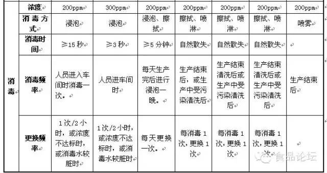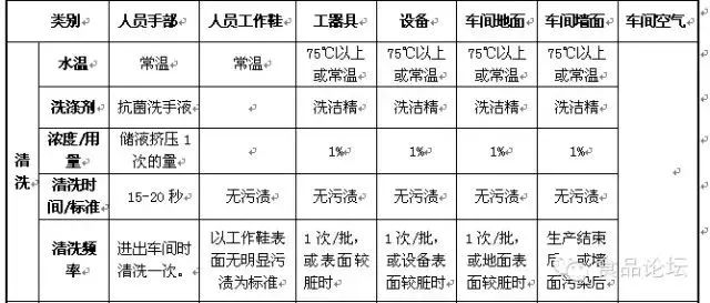 6.2 車間清洗消毒規范簡表