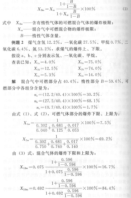 根據(jù)經(jīng)驗(yàn)公式計(jì)算,含有惰性氣體的多組分可燃?xì)怏w混合物的爆炸極限可用下式計(jì)算: