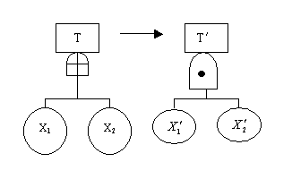 ??? 式2用圖形表示就是圖5,b是a的成功樹。由圖可見,圖中所有事件都變化,邏輯門也由“或門”轉換成“與門”。