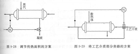 (3)調(diào)節(jié)傳熱面積F,如圖9—28所示。這種方案滯后較大,只有在某些必要的場(chǎng)合才采用。
