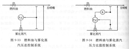 (1)根據燃料油閥后壓力與霧化蒸汽壓力之差來調節霧化蒸汽,即采用壓差控制,女口圖9—33所示。