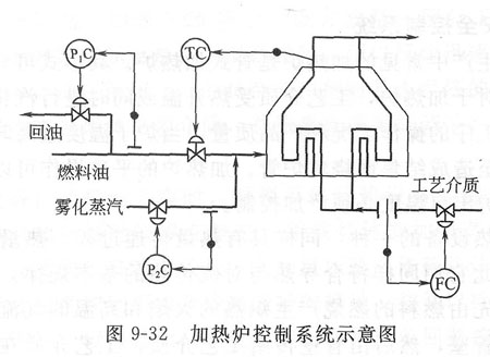 ①進入加熱爐工藝介質的流量控制系統,如圖9—32FC控制系統;