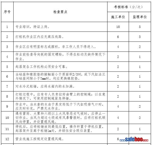 錘擊樁機施工安全考核表