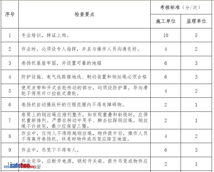 卷?yè)P(yáng)機(jī)施工安全考核表