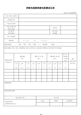 供配電線路絕緣電阻測試記錄