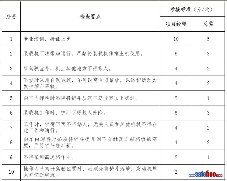 裝載機(jī)施工安全考核表
