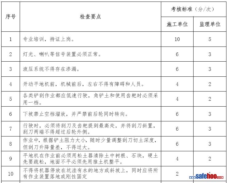平地機施工安全考核表