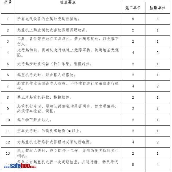 軌道式起重機施工安全考核表