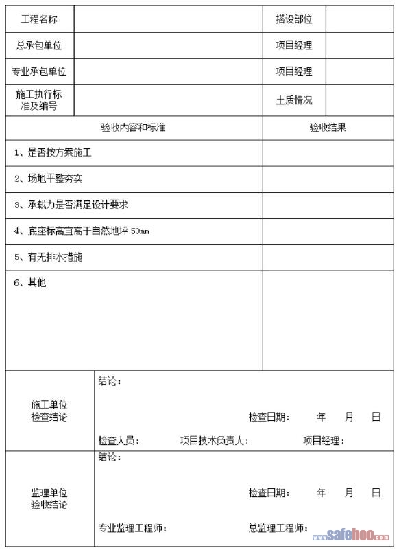 模板支架工程基礎驗收表