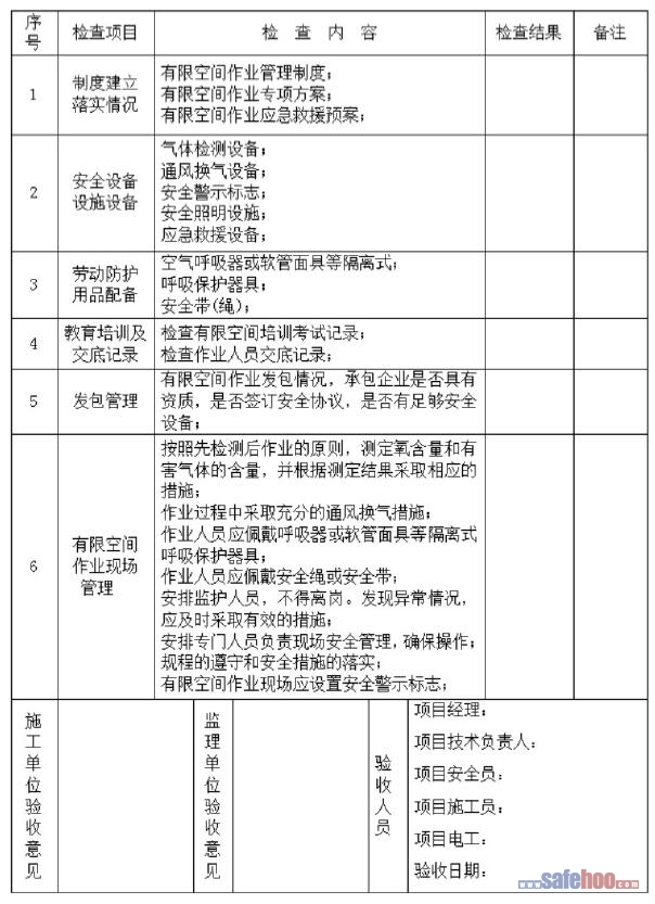 有限空間作業安全檢查表