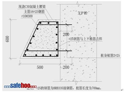 (3)冠梁、腰梁主筋、植筋鋼筋采用HRB335級別,箍筋采用HPB235級別;