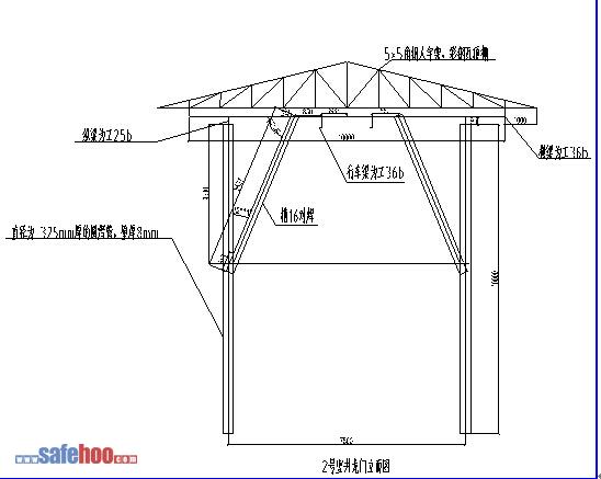 ①立柱采用直徑為325mm的圓焊管。側(cè)面兩立柱之間用2條[16a槽鋼焊接作剪刀撐,提升塔架共設(shè)10根立柱。