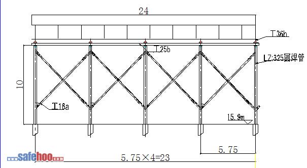 ②軌行梁采用36b工字鋼,橫梁采用工36b型鋼,每間隔6m設(shè)置一根,橫梁與立柱間設(shè)置工25b斜撐。