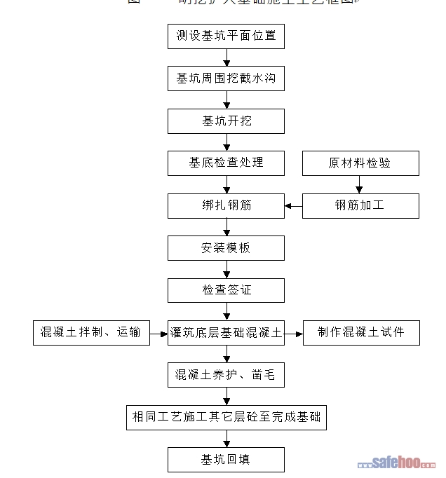 擴大基礎(chǔ)施工完畢后,及時將基坑回填夯實。基坑底層采用C15混凝土回填,底層以上采用普通土分層對稱回填夯實。 明挖擴大基礎(chǔ)砼施工質(zhì)量控制標(biāo)準(zhǔn): 表一?????????????????? 明挖擴大基礎(chǔ)允許偏差 序號項???????? 目允許偏差(mm)1基底高程+50,-2002基礎(chǔ)前后、左右邊緣距設(shè)計中心線±503基礎(chǔ)頂面高程±30二、注意事項 1、加強安全生產(chǎn)管理工作,提高預(yù)測預(yù)防能力,消除事故隱患,使安全生產(chǎn)始終在受控狀態(tài)之中。施工人員上崗前進行崗前培訓(xùn),特殊工種經(jīng)考試合格,持證上崗。實行各項安全生產(chǎn)崗位責(zé)任制。明確責(zé)任,把安全生產(chǎn)工作落實到每個人。施工臨時照明及機電設(shè)備的電線,應(yīng)使用絕緣線,不得直接牽連在支架上。照明行燈及機電設(shè)備的移動線路,采用橡套電纜,對像套電纜定期試驗檢查。施工機械設(shè)備使用前進行強制性的安全檢查,加強保養(yǎng),使其保持良好的工作狀態(tài)及具備完好的安全裝置。 2、做好施工現(xiàn)場的布置和排水系統(tǒng)設(shè)施,保證生活污水、生產(chǎn)廢水不污染水源;生活廢水、機械排放的含油污水按規(guī)定處理后排水指定區(qū)域;施工廢水集中沉淀處理后排放。 3、對施工人員進行文明施工教育,建立健全崗位責(zé)任制,把文明施工責(zé)任制落到實處,提高全體施工人員文明施工的自覺性,增強文明施工意識。 4、搞好與當(dāng)?shù)厝罕姾椭C。施工工點掛牌施工。設(shè)置工點標(biāo)牌,施工現(xiàn)場設(shè)置醒目的安全警示標(biāo)志、安全標(biāo)語,作業(yè)場所有安全操作規(guī)章制度,現(xiàn)場的施工用電安裝規(guī)范、安全、可靠,建設(shè)安全標(biāo)準(zhǔn)工地。 5、施工現(xiàn)場內(nèi)各種器材堆放整齊,掛設(shè)標(biāo)牌,標(biāo)明材料規(guī)格、產(chǎn)地等,不同材料避免混放。各級負責(zé)人及施工人員一律掛胸卡上崗。現(xiàn)場施工人員及管理人員必須佩帶安全帽。 三、施工中若發(fā)現(xiàn)與施工現(xiàn)場不符,請即時與技術(shù)室聯(lián)系。施工中若出現(xiàn)有關(guān)不明問題及時與技術(shù)室商討解決,其他未盡事宜由施工現(xiàn)場領(lǐng)工補充。 四、附圖:明挖基礎(chǔ)結(jié)構(gòu)圖 ? ? ? ? ? ? ? ? | ||||||