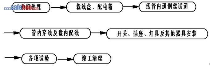 [5]對(duì)穿管敷設(shè)的絕緣導(dǎo)線,其額定電壓不應(yīng)低于500V,管內(nèi)穿線在建筑物抹灰、粉刷及樓面工程結(jié)束后進(jìn)行。