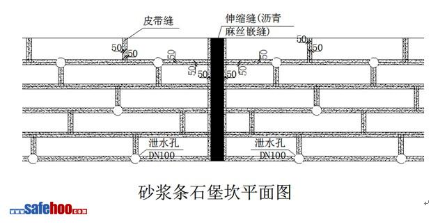 10.條石與條石之間的間隙溝50mm寬皮帶縫,材料采用1:3水泥砂漿。