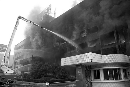 在大功率高噴車的壓制下,大火被牢牢控制在大樓東側。到下午2時40分,明火被基本撲滅。為防止火災現場復燃,消防部門利用大功率消防水炮對火場進行降溫,到下午4時許,現場基本處置完畢。