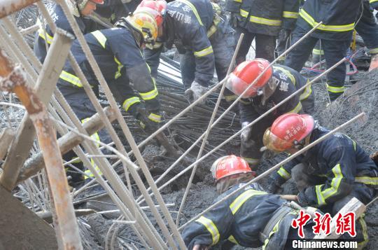 由于有兩名被埋工人已被工友救出,所以現場仍有4名工人被埋在坍塌的支模架和混凝土下面。