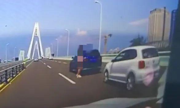 從網友提供的現場視頻可看到,三輛事故車分別依序停在橋上,在藍色越野車和白色轎車中間有一名女子被困其中,白色轎車的車尾被撞凹陷嚴重,白色轎車的后方還停著另一輛車頭受損的轎車。而在另一個視頻中,能看到藍色越野車和白色轎車在發生事故后前后停在路上,但是兩車還隔著一些距離,還能看到有一個人站在兩車中間位置的一側。
