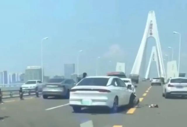 9月15日13時20分左右,在海口世紀大橋上接連發生兩起碰撞事故,先是白色轎車和越野車發生碰撞,當前方兩車的司機下車處理事故時,后方駛來的另一輛轎車追尾碰撞了白色轎車,事故造成一死一傷。