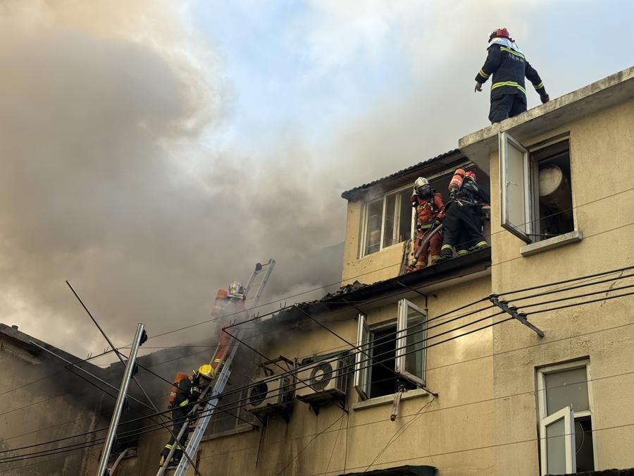 12月4日)上午10時40分許,黃浦區瞿溪路1200弄小區一居民樓突發火災。