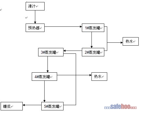 清汁經過各罐進行逐一濃縮,產生的蒸汽供后續物料濃縮使用,產生的熱水前二效供鍋爐用水,后幾效產生的作工藝熱水使用,所產生的糖漿供煮煉車間煮糖,嚴格按工藝指標進行控制,保證產品的質量。