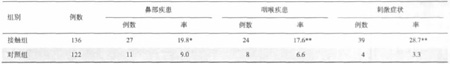 表2 接觸組與對照組多發病的比較(×10-2)