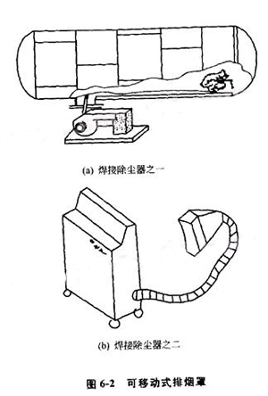 這類通風裝置可以根據焊接地點和操作位置的需要隨意移動。焊接時將排煙罩置于電弧附近,開動風機即能有效地把煙塵和有毒氣體吸走。