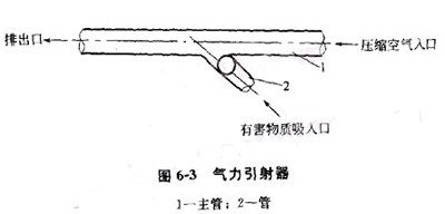 其排煙原理是利用壓縮空氣從主管1中高速噴出時,在管2形成負壓區,從而將電焊煙塵和有毒氣體吸出。