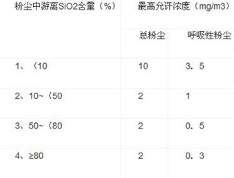 表2??? 作業(yè)場(chǎng)所空氣中粉塵濃度標(biāo)準(zhǔn)