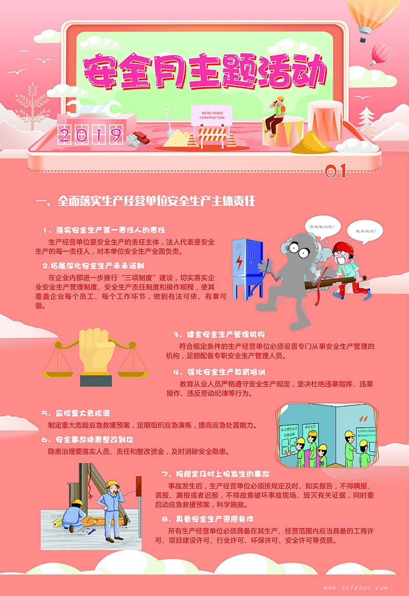本套掛圖將2019 安全月主題凝結成精煉的語言,溫馨的畫面,主題突出、層層遞進,從而加深對安全發展的體會和理解。具有營造安全生產月氣氛、增強員工應急意識、促進安全生產的作用。(本招貼將根據具體的安全生產月主題進行一定的調整)