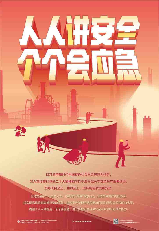本套展板緊扣2023 年全國安全生產月主題“人人講安全 個個會應急”,體現了人民至上、生命至上、應急管理、防災減災救災、危化品安全、安全教育等多方面內容,畫面新穎,主題明確,烘托安全月的濃厚氛圍,適合各級政府和企業安全月期間進行宣傳和展示。