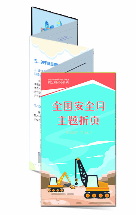 為方便安全生產(chǎn)宣傳活動,我們編制了系列安全生產(chǎn)折頁,內(nèi)容生動活潑,實用性強,內(nèi)容涵蓋面廣,為您普及日常生產(chǎn)與生活中的安全知識。本套折頁與掛圖形式結(jié)合,使安全教育更加到位,彌補安全宣教掛圖和圖書教材的不足,形式新穎,喜聞樂見,便于安全宣教活動發(fā)放,內(nèi)容新,符合國家最新法律法規(guī)和標(biāo)準(zhǔn),具有可讀性,從業(yè)人員一看便懂一看便會,宣教效果立竿見影。