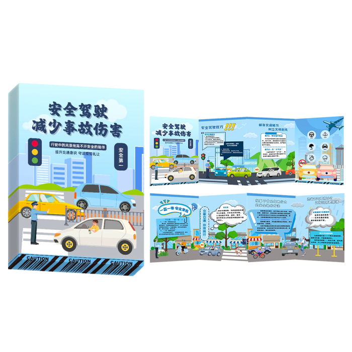 風琴折卡是我公司新推出的一款安全宣教產品,產品圖文并茂,通俗易懂,小巧便捷,獨立包裝,方便現場發放。折卡采用的了200克銅版紙進行