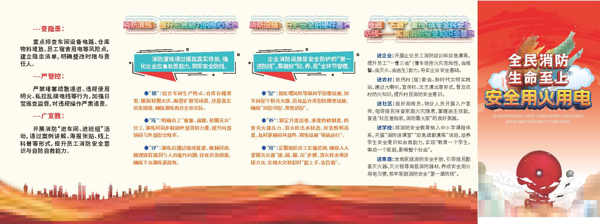 為方便安全生產宣傳活動,我們編制了系列安全生產折頁,內容生動活潑,實用性強,內容涵蓋面廣,為您普及日常生產與生活中的安全知識。本套折頁與掛圖形式結合,使安全教育更加到位,彌補安全宣教掛圖和圖書教材的不足,形式新穎,喜聞樂見,便于安全宣教活動發放,內容新,符合國家最新法律法規和標準,具有可讀性,從業人員一看便懂一看便會,宣教效果立竿見影。