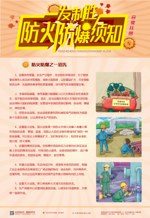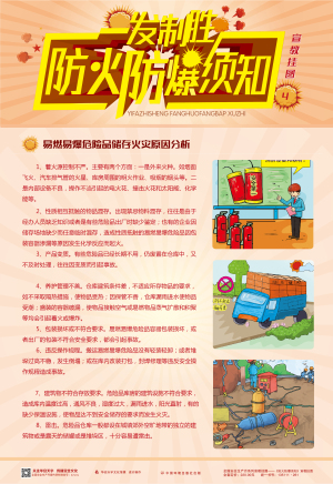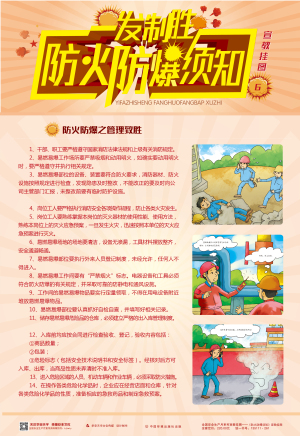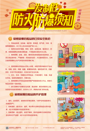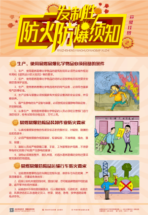 火災爆炸重特大事故時有發生,使防火防爆安全問題越來越得到人們的重視。本套掛圖針對日常工作和生活中常見的易燃易爆品提出系統化管理建議,歸納總結出常用的防火防爆安全技術知識,便于觀者快速掌握和記憶,張貼在作業場所,不僅美化辦公環境,且有利于查閱,有效防范各類火災爆炸事故的發生。