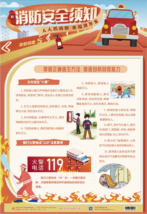 本套掛圖內容豐富,以圖文并茂的形式講述了不同場合發生火災時的自救常識、逃生技巧等,注重實用性和操作性,對普及消防安全知識,增強消防安全意識,提高公民逃生自救能力都具有較強的指導作用和實用價值。