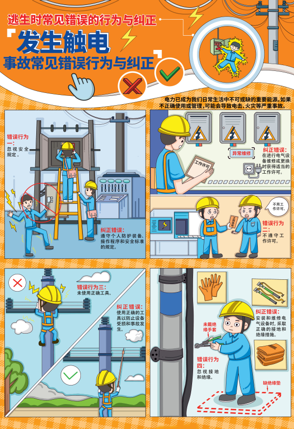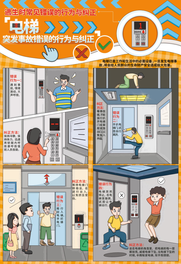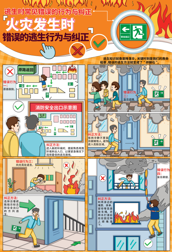 逃生時的正確決策至關重要,然而人們在面臨危險時往往會因各種原因出現錯誤的逃生行為。逃生時常見錯誤的行為及糾正宣教掛圖就是為了普及正確的逃生知識而制作的。此套掛圖涵蓋了多種危險場景下的逃生情況,包括發生火災、燃氣泄露、觸電等場景下逃生時常見的錯誤行為。有助于人們提高在不同危險場景下的逃生能力,增強應對危險的意識。