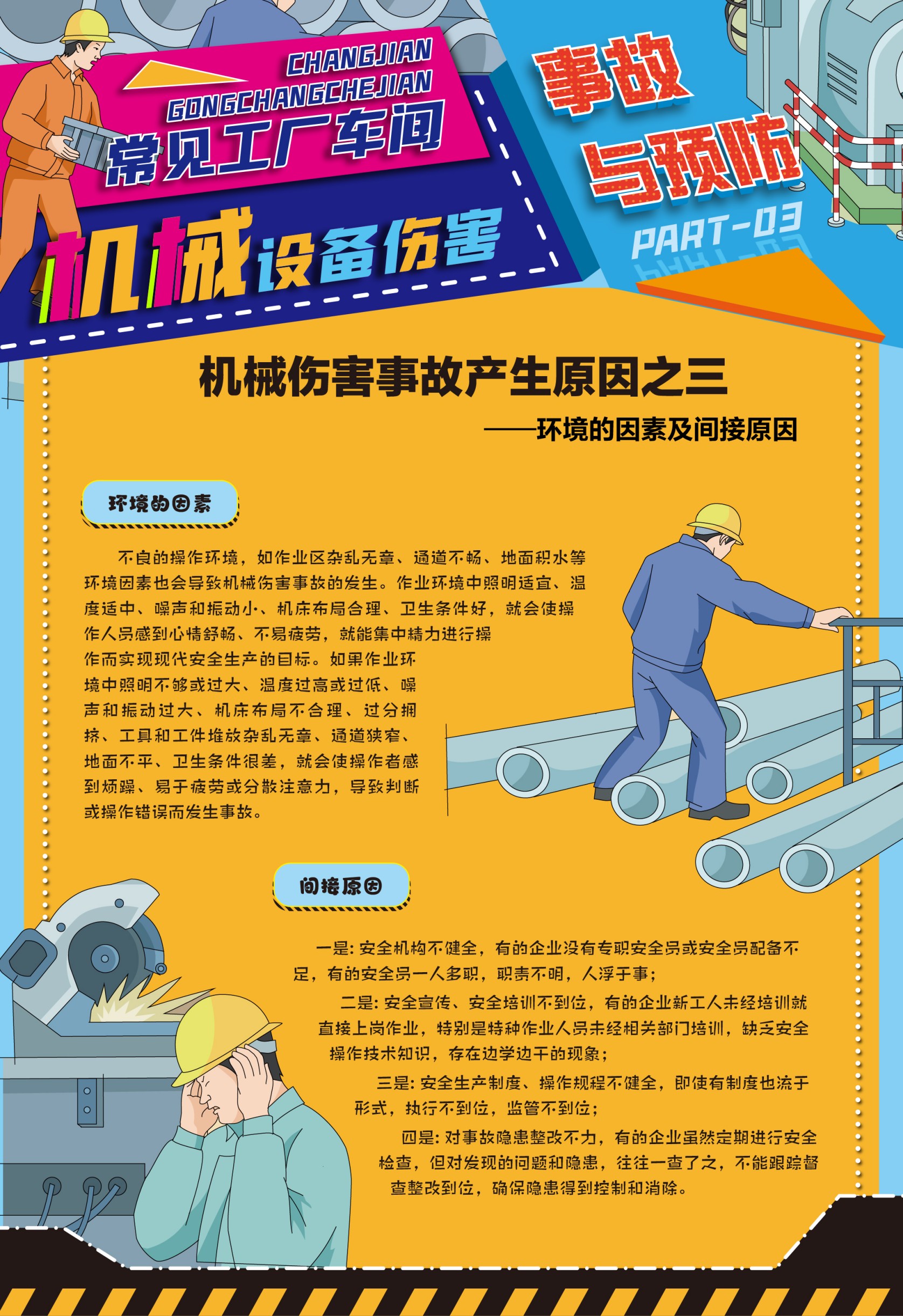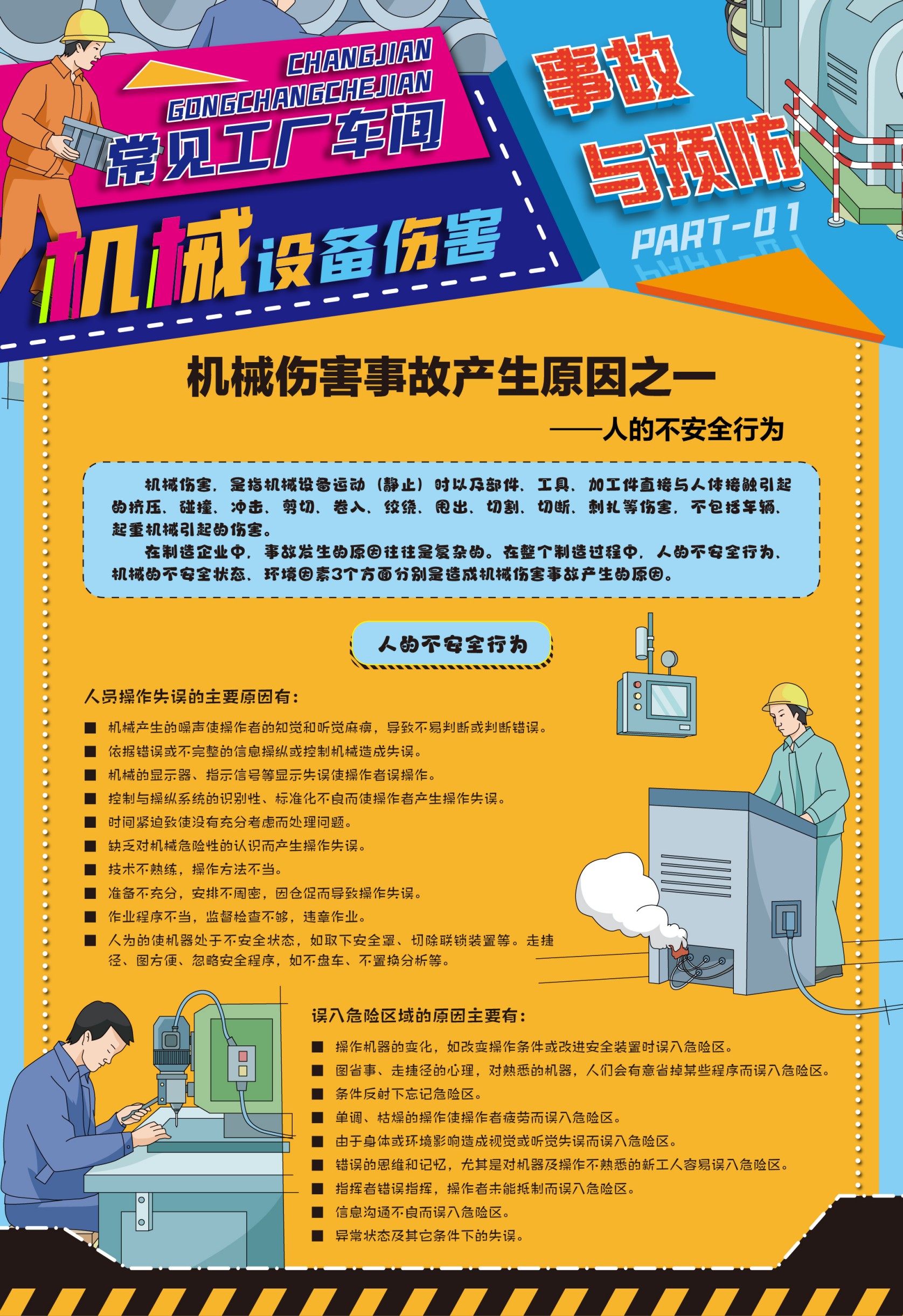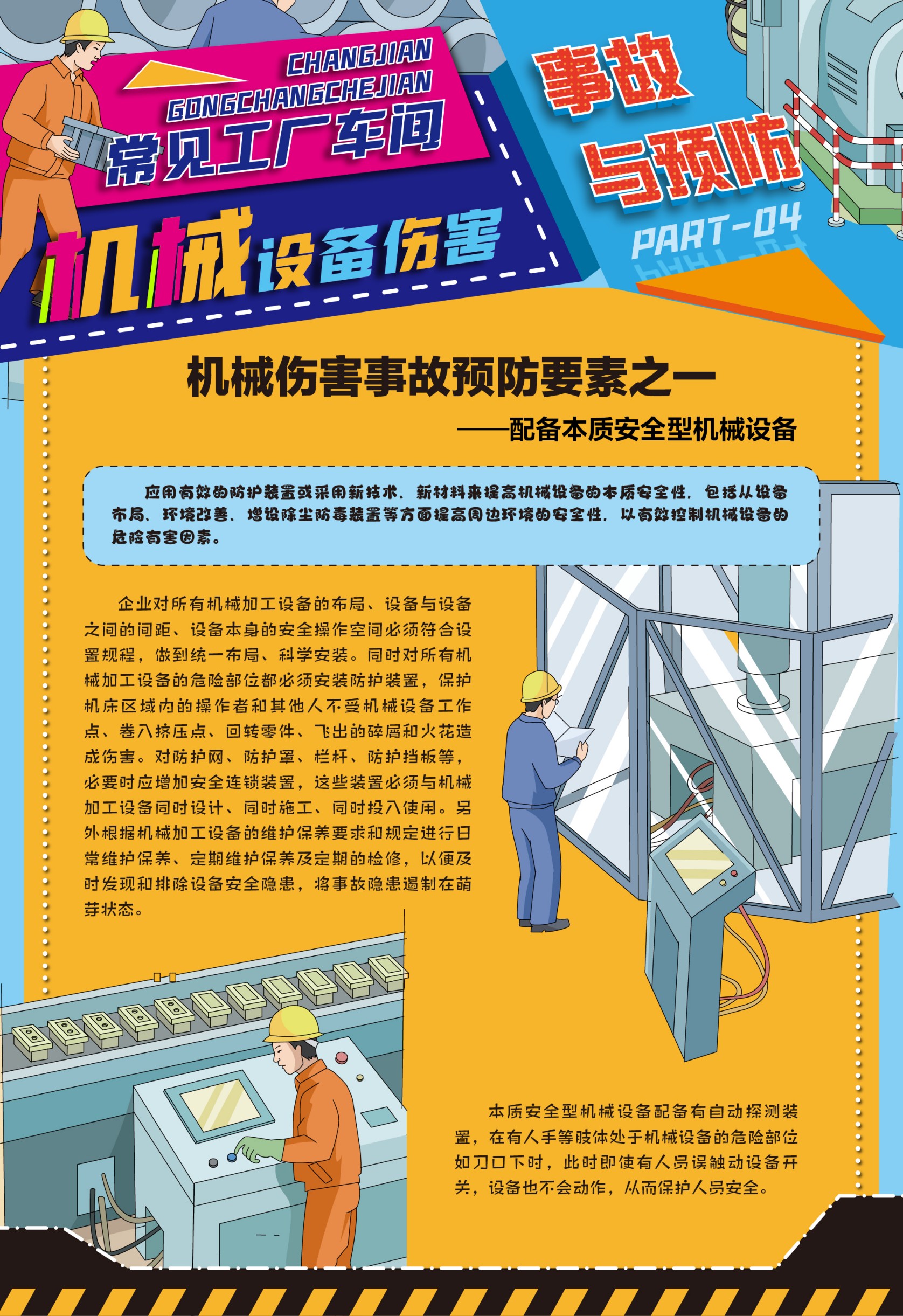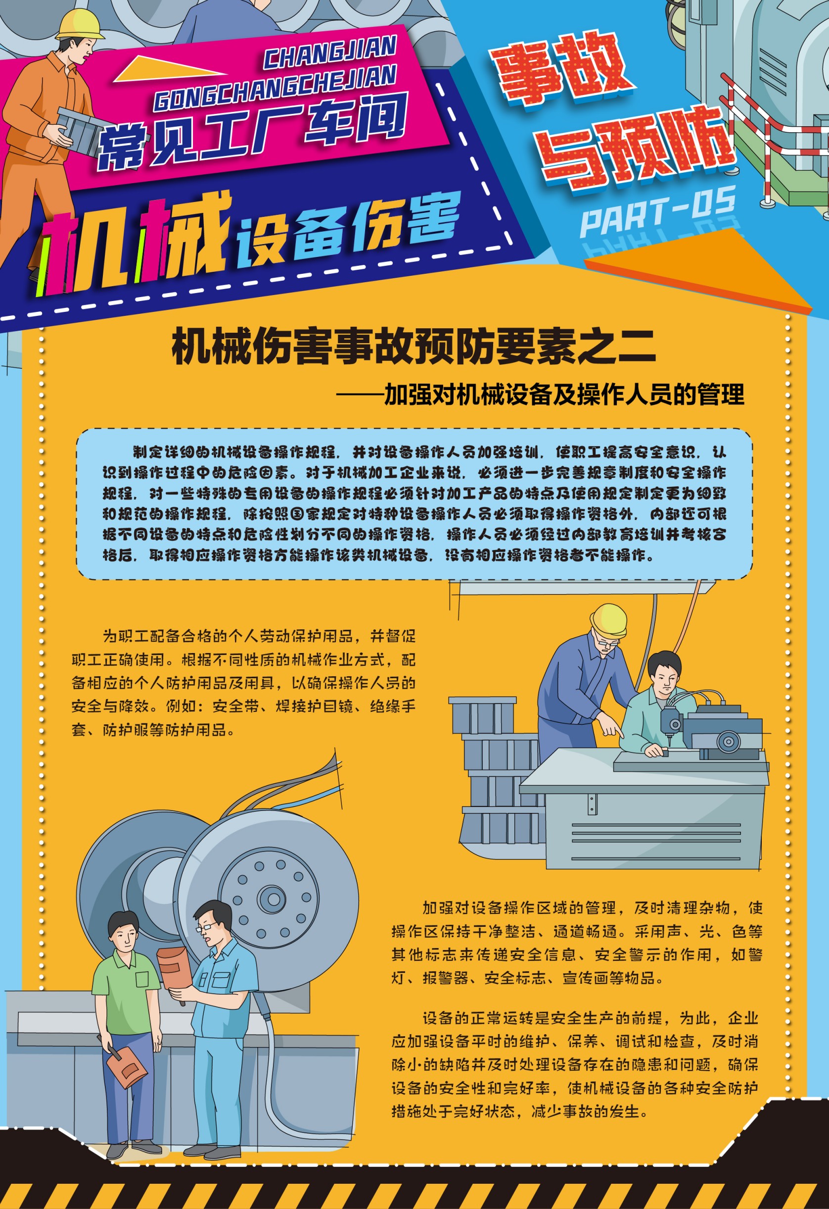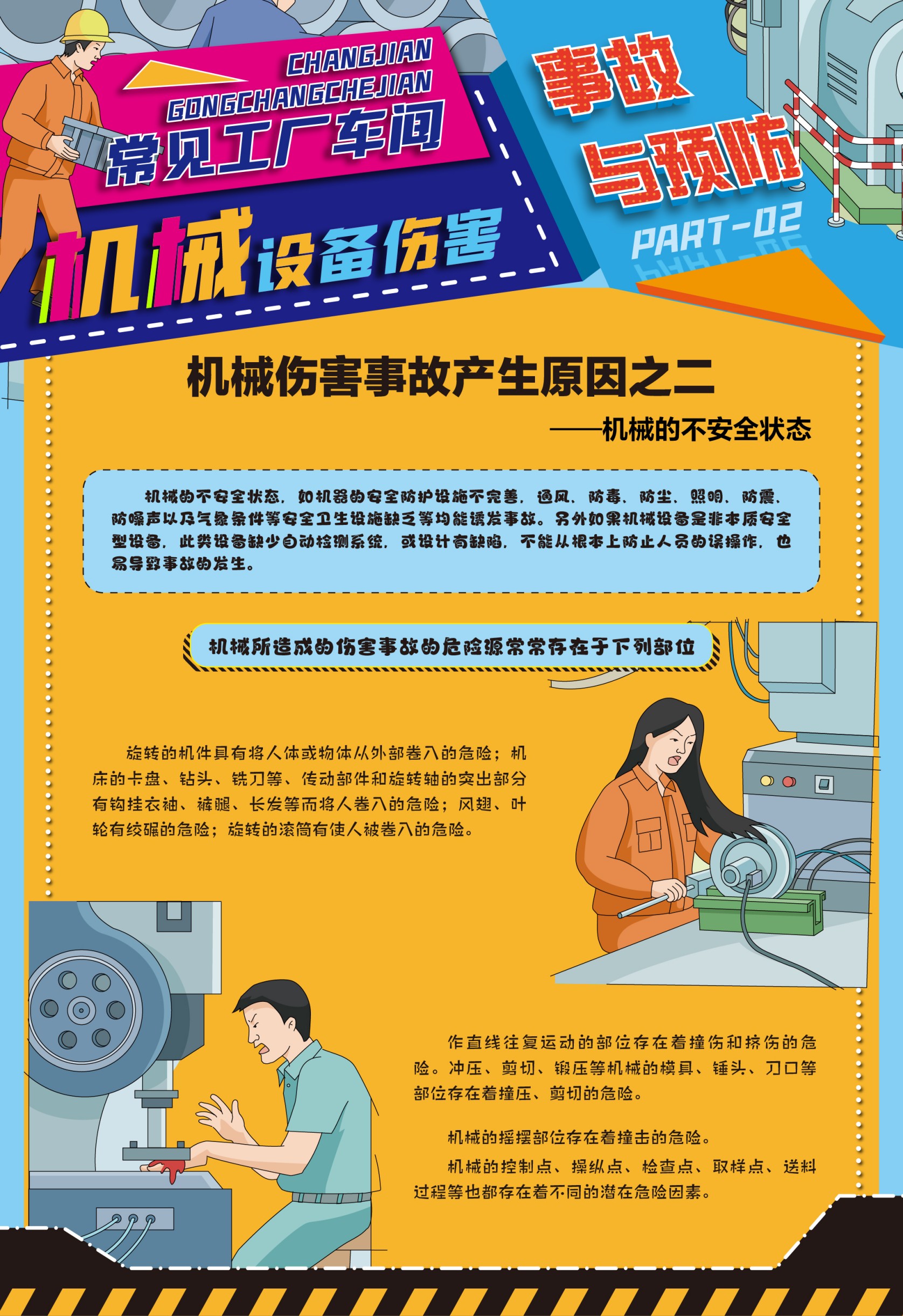 本套掛圖從機械傷害產(chǎn)生的原因到如何預(yù)防傷害事故產(chǎn)生的要素方法做對應(yīng)說明,逐條列出機械傷害事故產(chǎn)生的人的不安全行為、機械的不安全狀態(tài)、環(huán)境的因素及間接原因,并提出預(yù)防事故響應(yīng)的方法和管理制度。