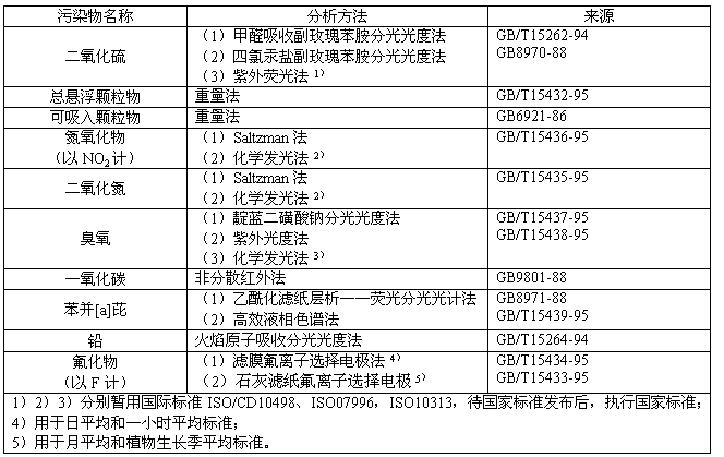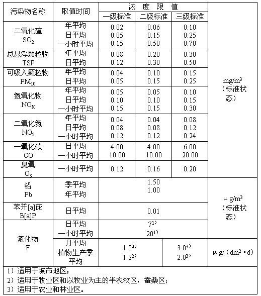 本標(biāo)準(zhǔn)規(guī)定了環(huán)境空氣質(zhì)量功能區(qū)劃分、標(biāo)準(zhǔn)分級、污染物項(xiàng)目、取值時(shí)間及濃度限值,采樣與分析方法及數(shù)據(jù)統(tǒng)計(jì)的有效性規(guī)定。