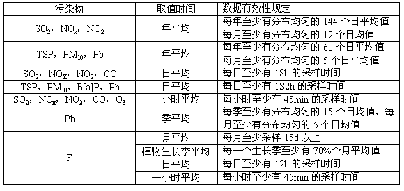 各項(xiàng)污染物數(shù)據(jù)統(tǒng)計(jì)有效性規(guī)定,見表3。