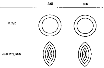 B.2 裂隙燈檢查:在徹照法檢查之后,用裂隙燈顯微鏡對晶狀體改變進(jìn)行詳細(xì)觀察記錄(彌散光及光切面檢查),并按下列格式標(biāo)示病變部位及范圍。