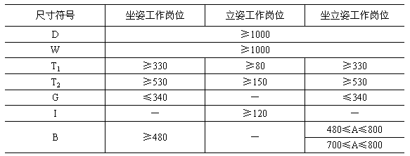 與作業無關的工作崗位尺寸按表1所規定的數值確定;與作業有關的尺寸匯總如下: